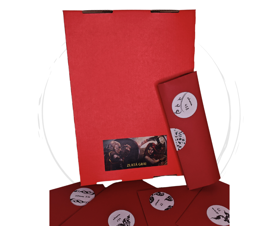 Box s obálkami a sběratelskými předměty, které se vážou k nejnovějšímu dílu série. Fotografie je ilustrační - takto vypadal box k prvnímu dílu.